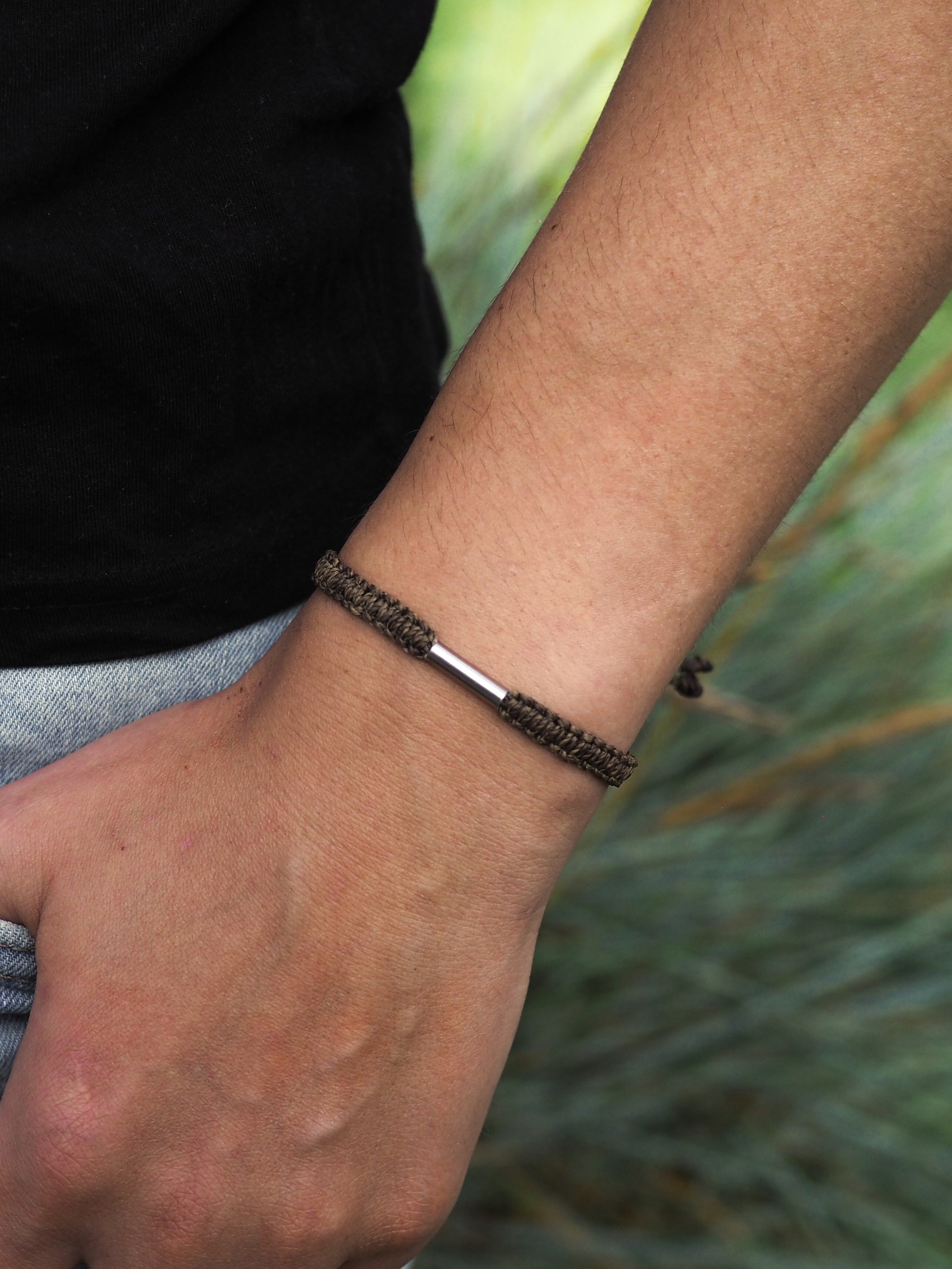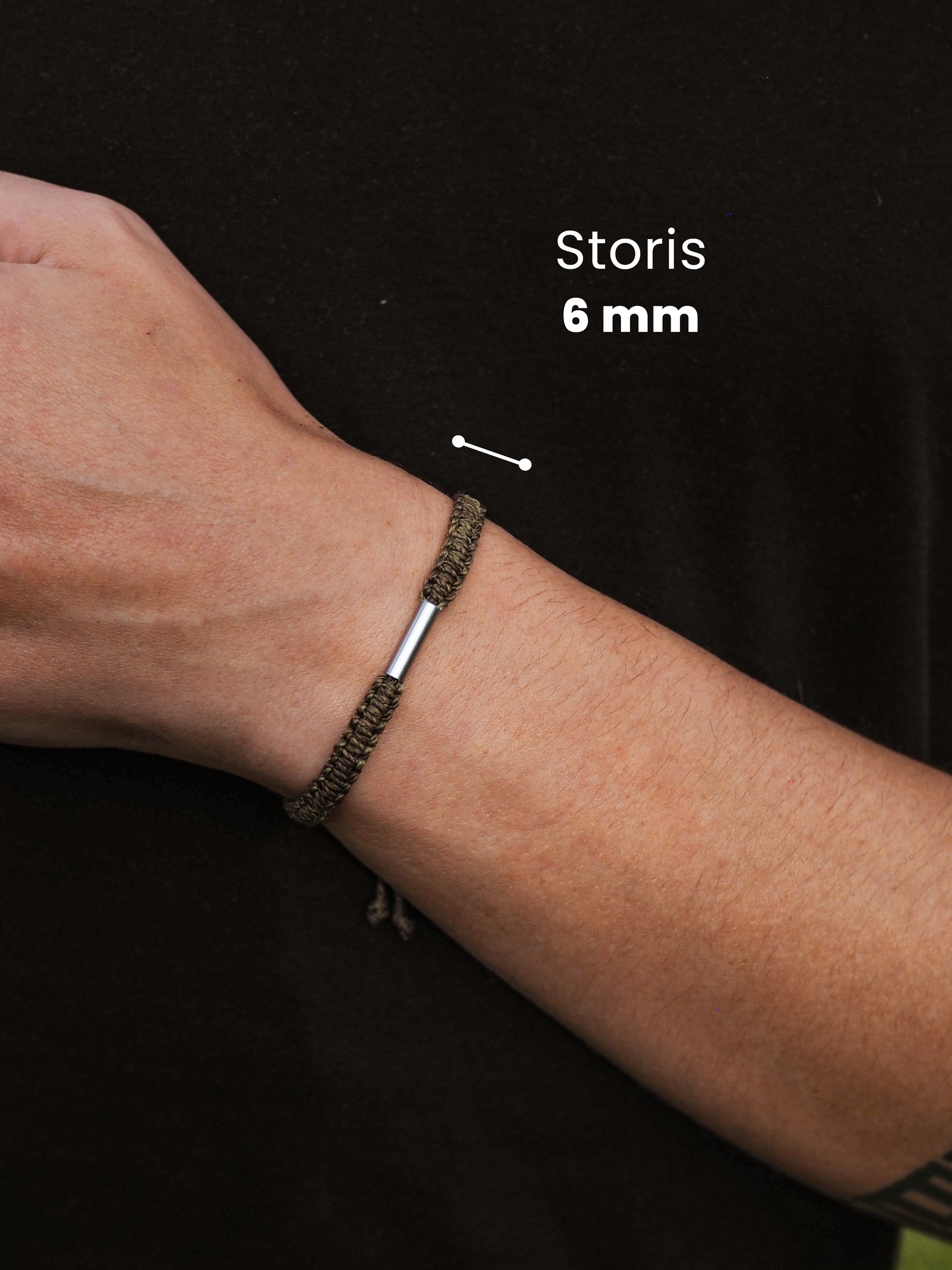 Apyrankės dydis reguliuojamas mazgeliu. Apyrankė tinka riešams, kurių apimtis 15-19 cm. Jeigu reikia trumpesnės arba ilgesnės apyrankės, užsakymo komentare nurodykite savo riešo apimtį. Apyrankę pritaikysime individualiai.