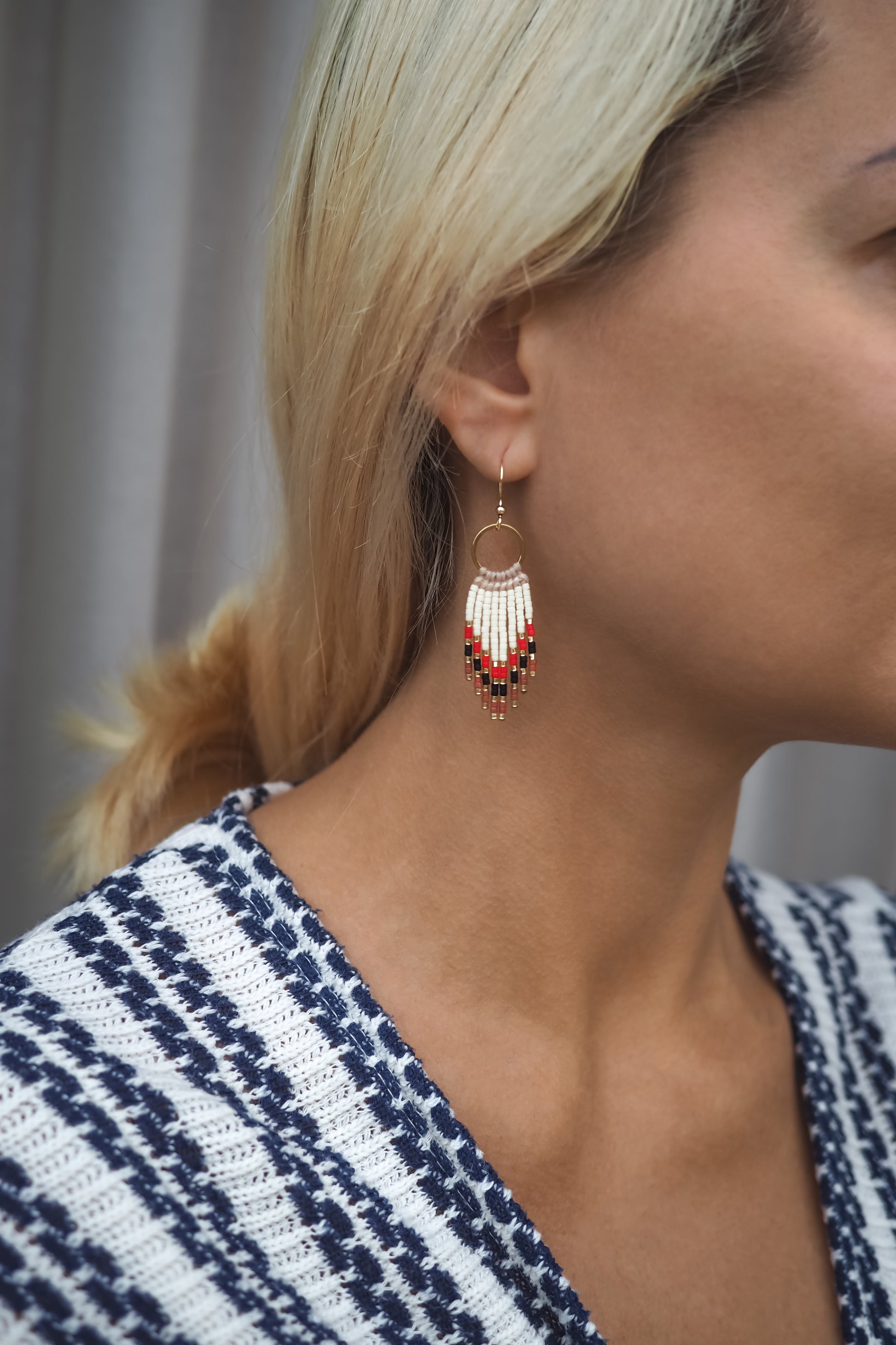 Mažų karoliukų auskarai kilę iš Amerikos indėnų kultūros. Nuo senų laikų vietinės moterys puošdavosi spalvotais biserio karoliukais įvairioms apeigoms bei kasdienėms progoms. Šie margi auskarai yra suverti ant braziliško siūlo, jie yra tvirti, bet lengvi.