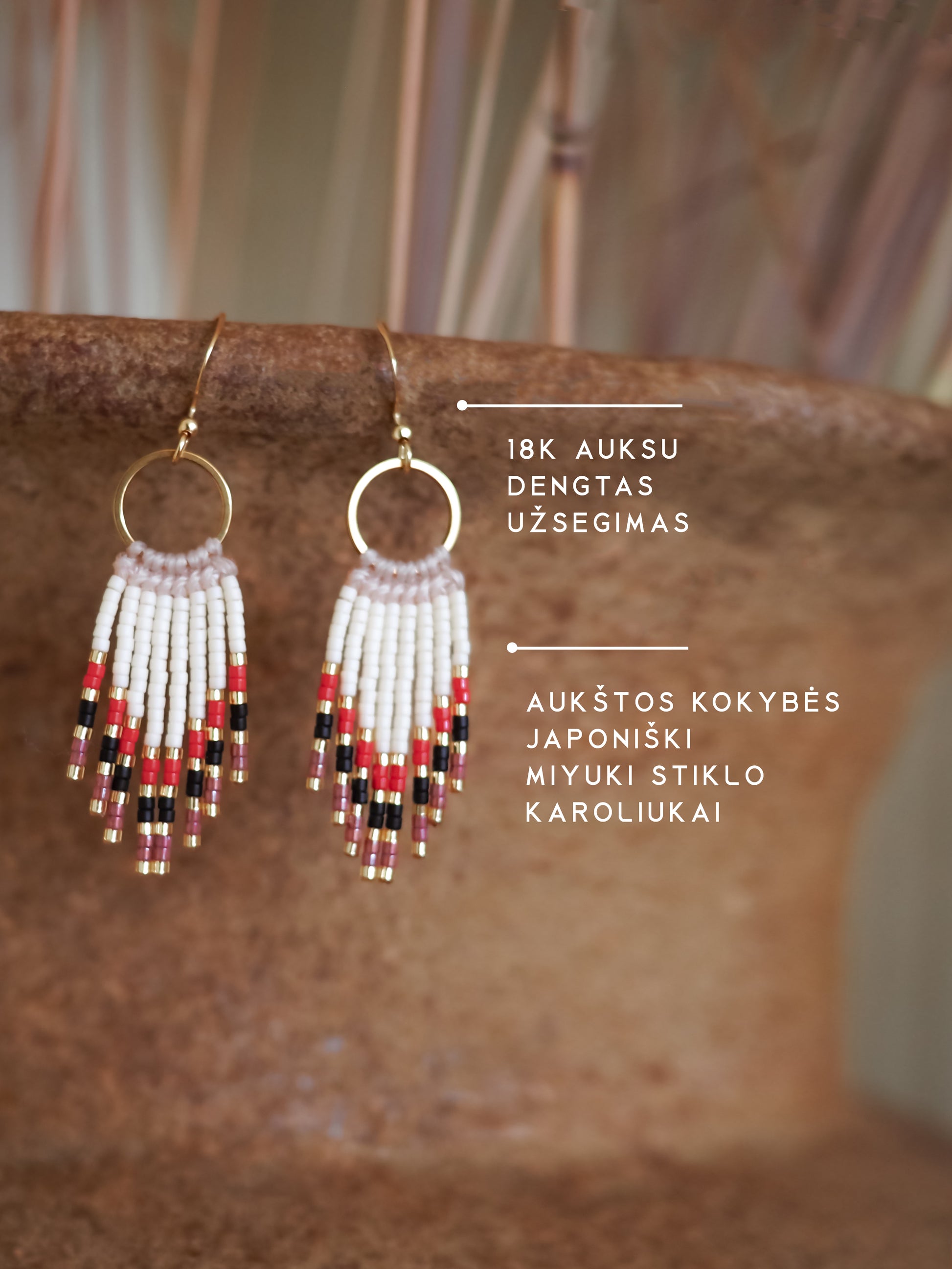 Išskirtiniai 18k auksu dengti auskarai pagaminti iš aukštos kokybės Miyuki stiklo karoliukų. Auskarai itin lengvi, todėl juos galima nešioti visą dieną beveik jų nejaučiant. Šviesoje karoliukai pagauna švelnų spindesį, suteikdami auskarams prabangos ir išskirtinumo. Idealus pasirinkimas, jei ieškote bohemiškos prabangos ir švelnaus meninio charakterio ✨