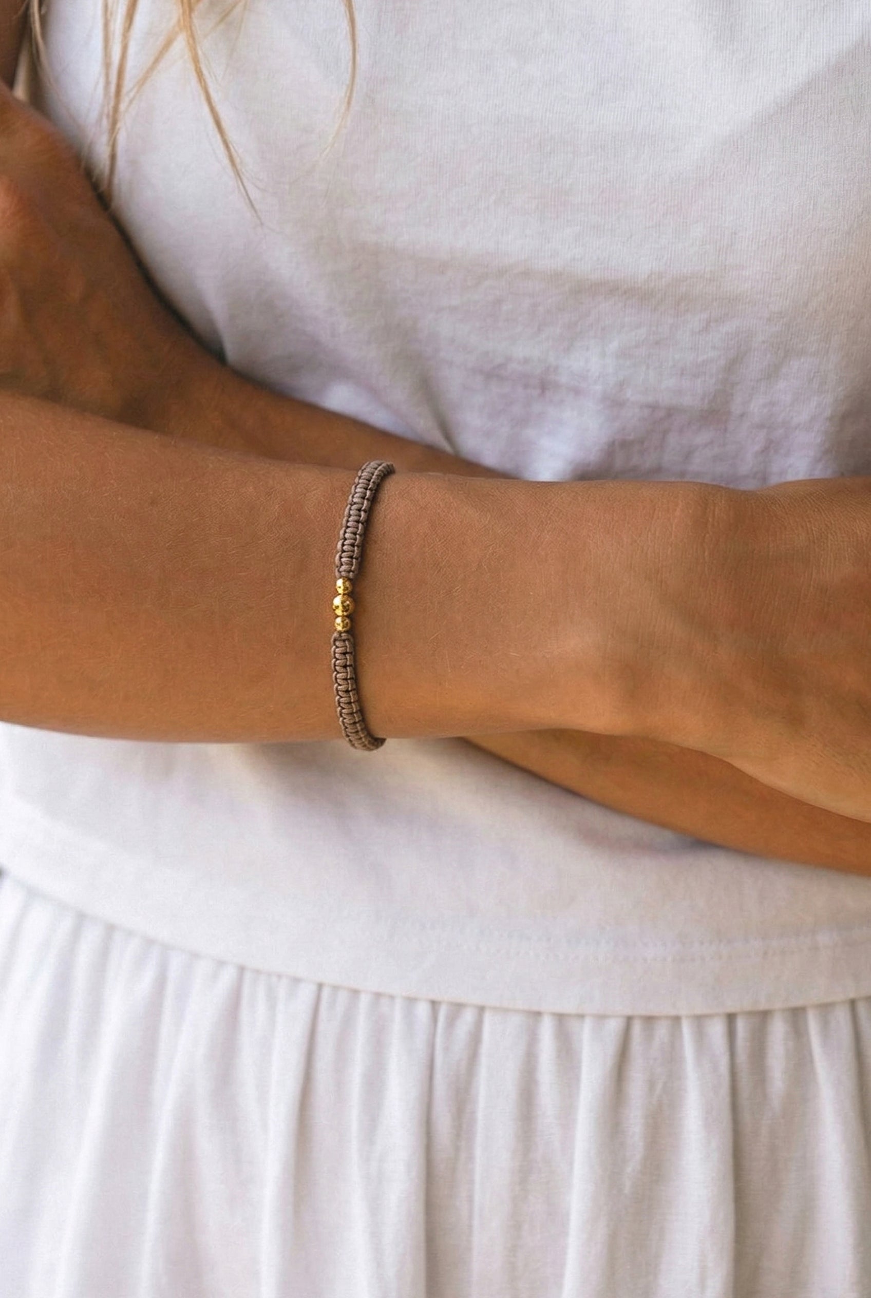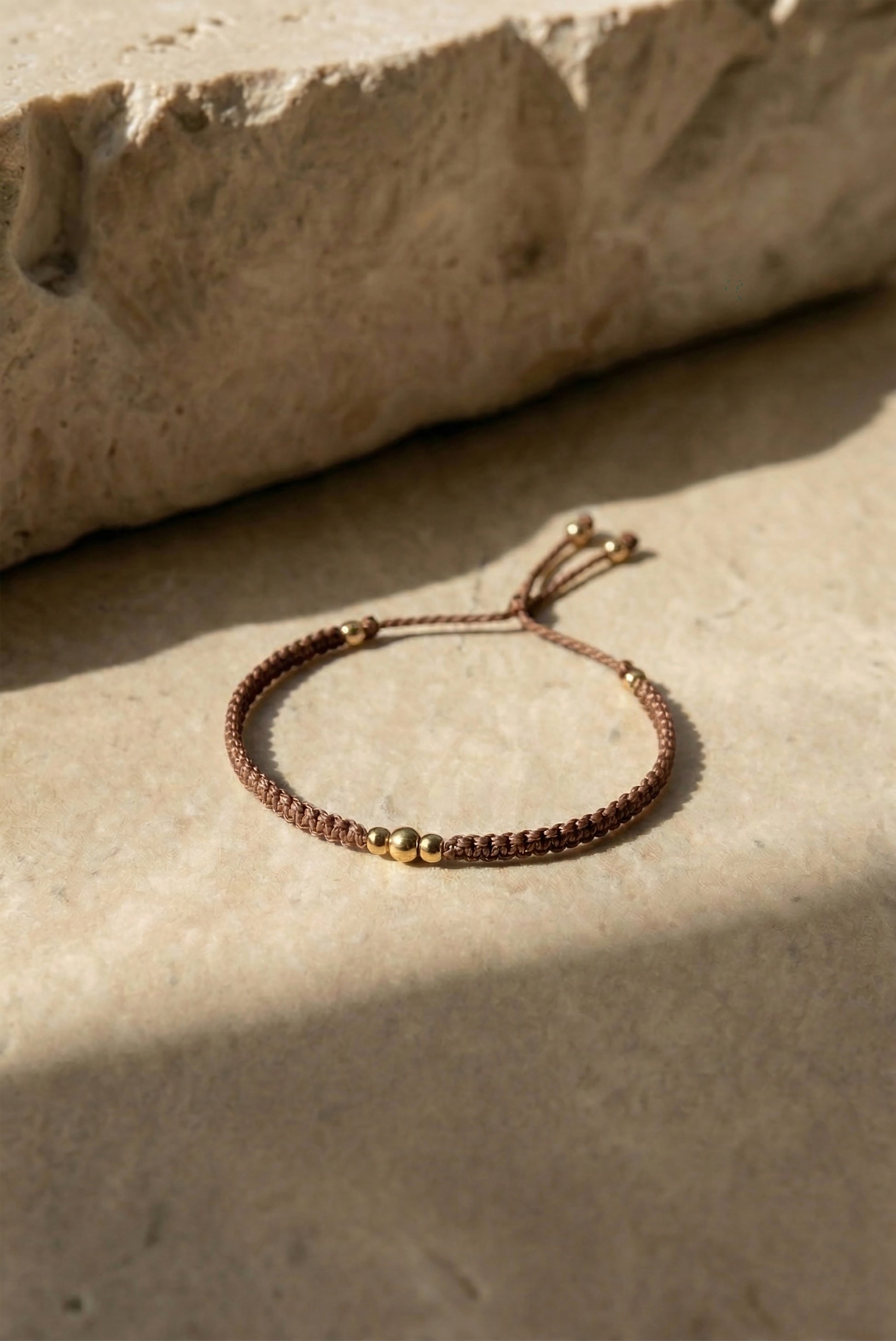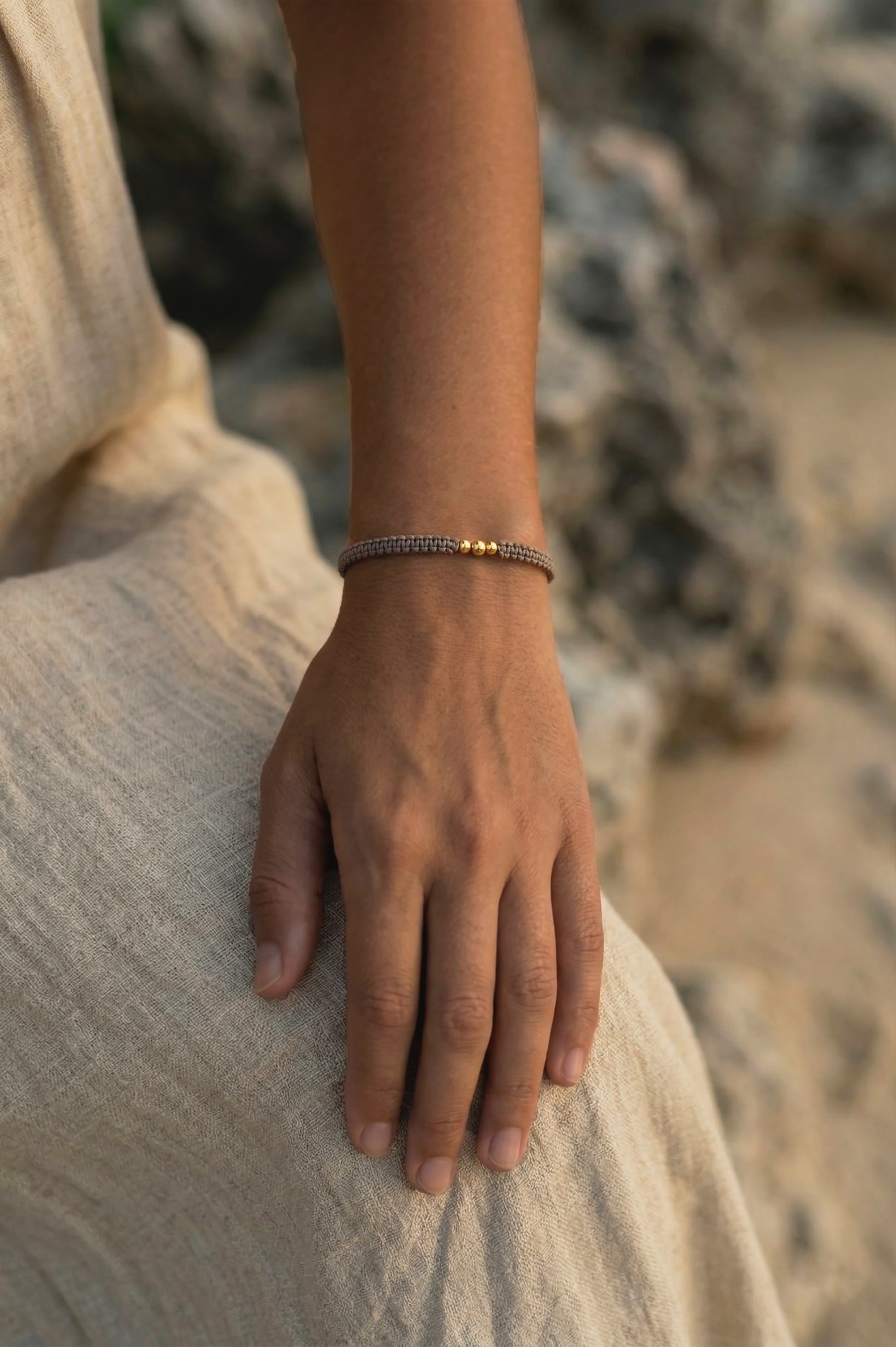 Macrame apyrankė pinta rankomis, sukurta iš kokybiškų ir tvirtų medžiagų. Auksiniai karoliukai niekada nenubluks, nepakeis savo spalvos nei nuo saulės, nei nuo vandens. Dydis reguliuojamas virvelėmis. Apyrankė labai patogi, jos visiškai nesijaučia, su ja galima miegoti ir ilgai nenusiimti, tinka kasdienai arba progoms.
